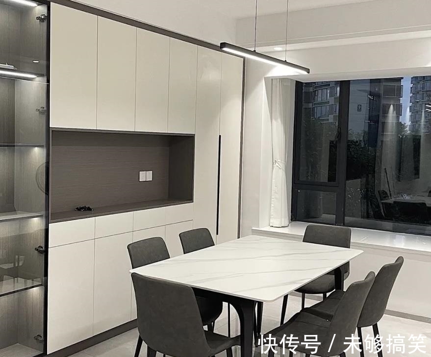也可以选择成品餐边柜,更加灵活:8㎡的餐厅,长95cm,宽43cm,高200cm的餐边柜最为合适;10㎡的餐厅,长120cm,宽44cm,高90cm的餐边柜最为合适。